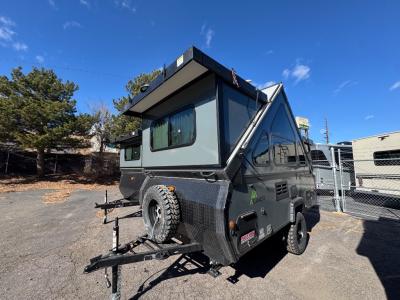 The Evolution A-frame camper by Aliner is coming to you with residential features and solid construction materials. You'll love the slate gray exterior, aluminum wheels, and the Azdel composite panels to help prolong the life of your camper. There are LED running lights, exterior baggage doors, and four stabilizer jacks to help keep your camper secure. You will also appreciate the keyless entry, the dual LP tanks with a cover, and the 200-watt solar panel on the front dormer for some off-grid power. The lift kit and 15" off-road tires add 3" to the height, allowing you to explore more roads, and you'll find many interior comforts to make you feel right at home!