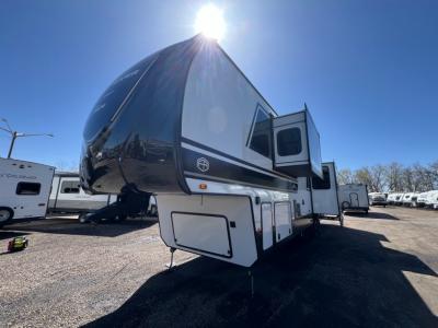 Sleeps 6 Slides 4 Length 44 ft 1 in Ext Width 8 ft 6 in Ext Height 13 ft 3 in Hitch Weight 2810 lbs Dry Weight 15794 lbs Cargo Capacity 3016 lbs Fresh Water Capacity 64 gals Grey Water Capacity 132 gals Black Water Capacity 88 gals Furnace BTU 40000 btu Available Beds King Refrigerator Type 12V French Door with Double Drawer Freezer Refrigerator Size 16 cu ft Cooktop Burners 4 Shower Size 30" x 48" Number of Awnings 2 LP Tank Capacity 30 lbs Water Heater Type On Demand Tankless AC BTU 45000 btu TV Info LR TV Awning Info 16' & 18' Power with LED Lights Axle Count 2 Washer/Dryer Available Yes Number of LP Tanks 2 Shower Type Standard Electrical Service 50 amp Similar Fifth Wheel Floorplans